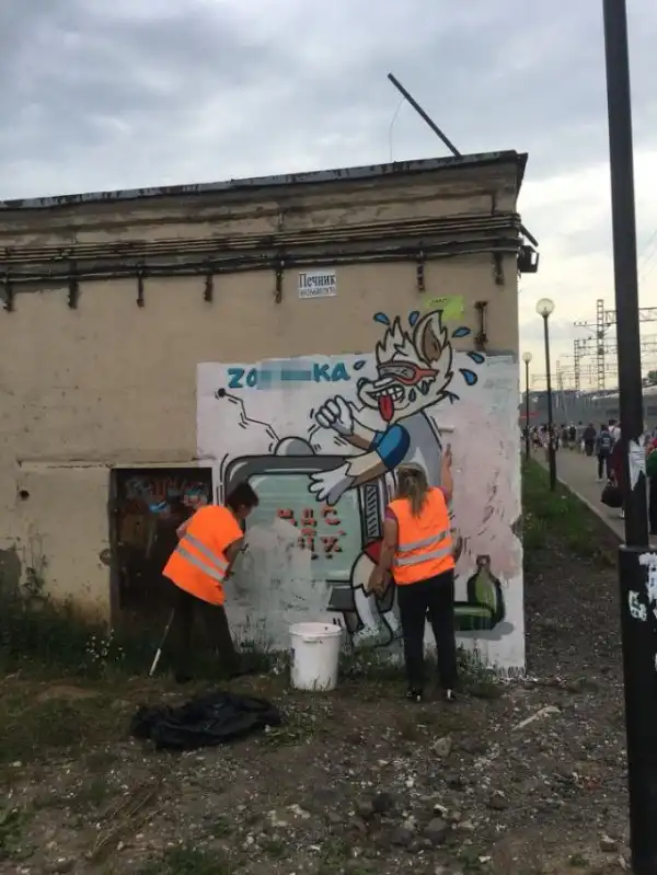 Противостояние коммунальщиков и уличных художников - это война, которая длится вечность. В этом посте будет история про граффити, которое появилось сразу после фееричной победы сборной России над Испанией. В честь этого радостного события художники нарисовали граффити на станции МЦК "Ростокино". Но коммунальщики быстро отреагировали на художества "вандалов" и закрасили граффити. И так началась битва.