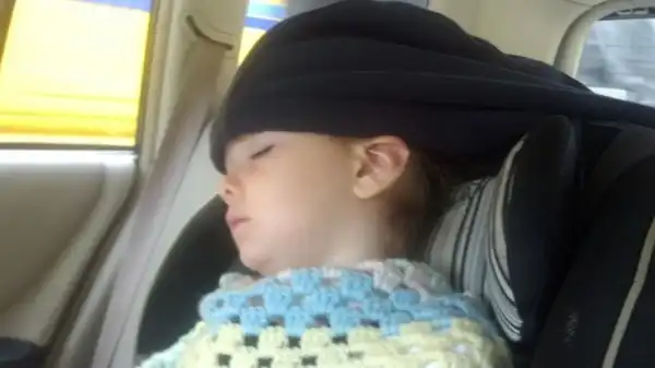С помощью толстовки с капюшоном можно поддерживать голову ребенка, если он уснет в машине