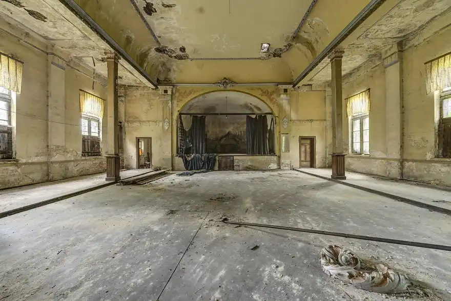 Фотограф Изабель ван Асше занимается снимками заброшенных зданий и помещений. Девушка нередко ездит в Германию - и удивляется, сколько там заброшенных залов для танцев. "В прошлом почти в каждой немецкой деревне был отель. Жители собирались там на праздники, свадьбы, дни рождения. В большинстве отелей свои были танцевальные залы. Однако времена изменились, и места стали старомодными и заброшенными", - рассказала Изабель. Давайте посмотрим на эти залы, сохранившие свои лоск и роскошь.