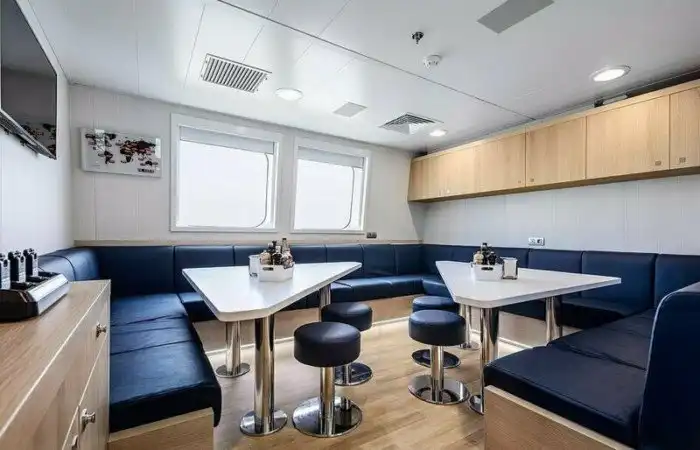 Если прибывшим гостям придется подождать на борту яхты сопровождения, пока подготовят их каюты, они смогут сделать это с комфортом - на борту яхты Hodor имеется полностью оборудованный бар и зона отдыха.