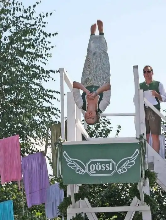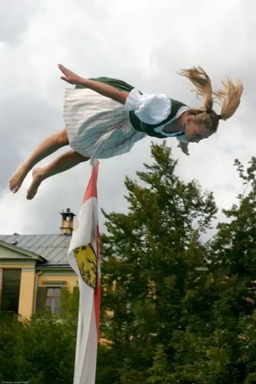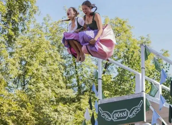 В австрийском Зальцбурге каждый год проходит такое веселое и зрелищное мероприятие: Девушки в национальных костюмах прыгают в воду.