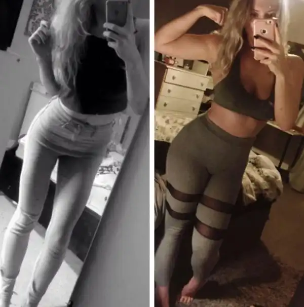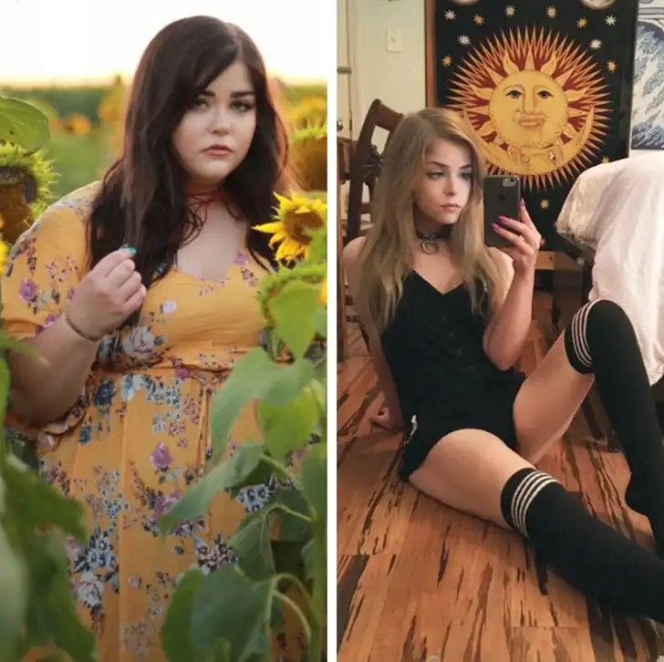 На первом снимке -16 лет, на втором - 21. Девушка всерьез занялась собой и сбросила 45 кг.