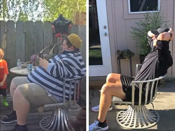 "В том же кресле 3 года спустя. Избавился от 140 кг, надеюсь, что скоро мне сделают операцию по удалению лишней кожи"