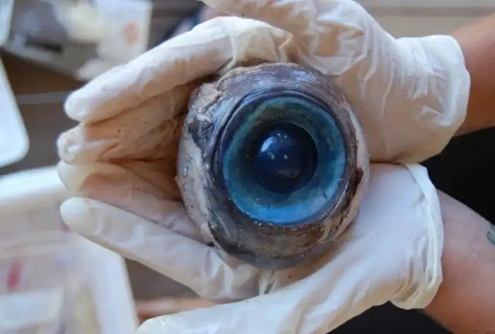 13. Глаз гигантского кальмара в человеческих руках