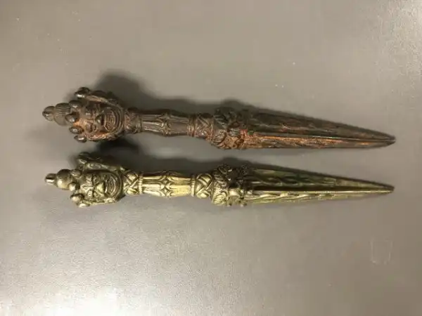 Это ритуальный кинжал, который использовался при изгнании злых духов. Он называется пхурба или кила. Такой кинжал использовался в буддизме или ведических традициях.