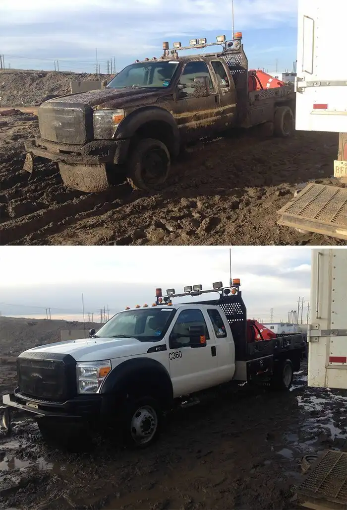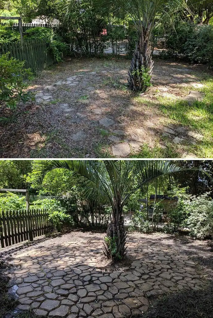 Эти фотографии "до" и "после" понравятся тем, кто обожает наводить чистоту и отмывать всё до блеска. Особенно с помощью профессиональной мойки высокого давления - мощного аппарата, который справится с любой грязью. Это настоящий супергерой гигиены!