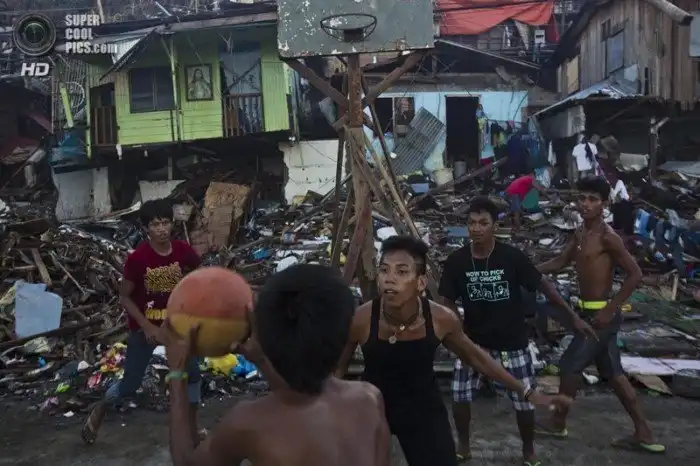 Филиппины. Ребята играют в баскетбол после очередного тайфуна.