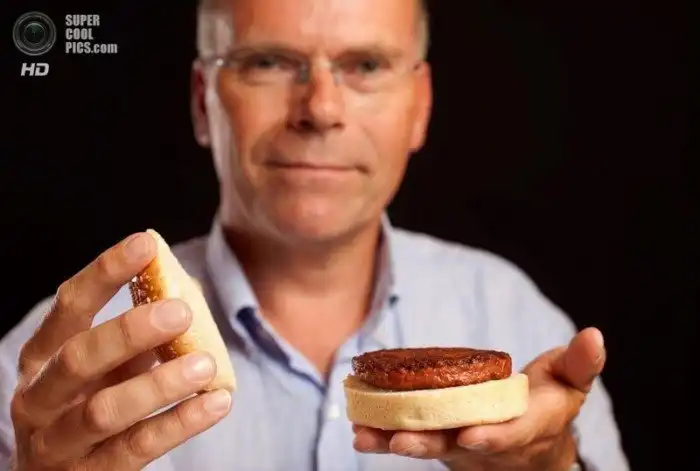 Котлета приготовлена из говядины, синтезированной в лаборатории из стволовых клеток мёртвой коровы.
