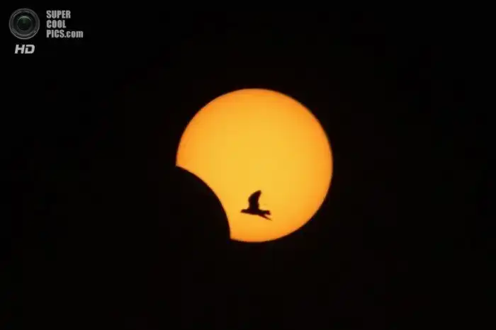 Ливан. Редкое гибридное солнечное затмение, которое меняется с полного затмения на кольцеобразное и обратно.