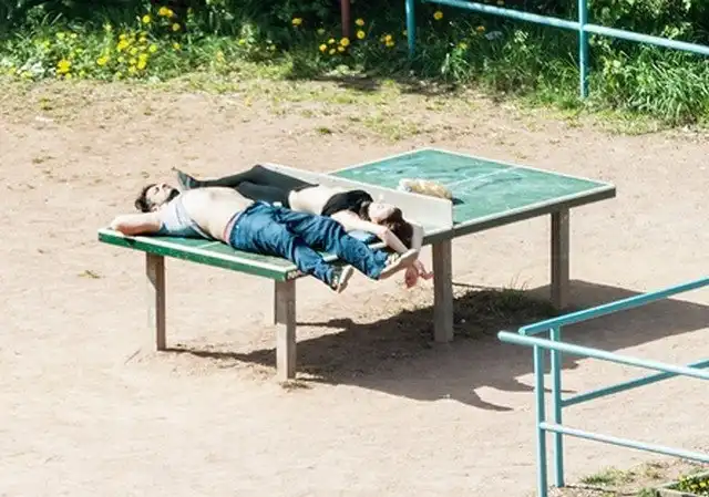 Нет повести печальнее на свете, чем повесть о том, как люди используют теннисный стол у себя во дворе. Ребята, ну камон – это и спорт, и тактика, и выносливость, и весело, в конце концов. А вы тут устроили фиг пойми что…