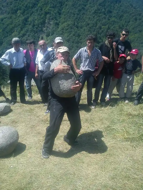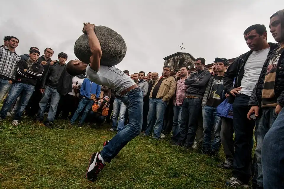 Думаете, что вы умеете развлекаться, сильны физически, к тому же еще и считаете себя ловким? Тогда посмотрите на этих бравых грузинских мужиков, которые участвуют в необычном состязании.