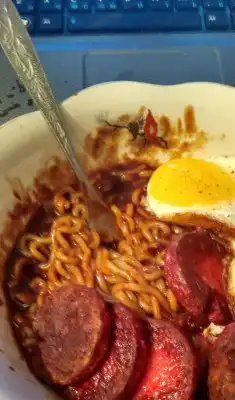 Получается вот такая "няма", хотя по виду не скажешь. Само собой, овощей как на фото, тут нет. Допускаю, что пока соус ехал из Кореи, овощи перемололись в жижево, зато здесь есть ровно три кусочка (на фото два) мяса, которое вполне себе, что даже удивительно. Нет, это не просто тупо соевый соус с вермишелью, как думают многие. Кто любит корейскую или китайскую кухню в принципе, тот оценит. Это действительно вкусно, что подтвердила жена, а главное, что это не какой-то изыск для русского человека. Все очень норм.