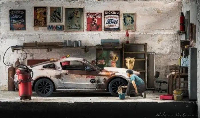 Сейчас на счету Эдди более сотни диорам, и часть из них уже выкуплена поклонниками его творчества со всего света. Бывает, работает Путера и по заказу: например, на Bored Panda однажды появилась история о том, как некий заказчик попросил Эдди воссоздать деревенский дом его деда и дедушкин "Жук" – чтобы потом подарить диораму самому дедушке. Как говорит художник, работать над диорамами он может сутками, отвлекаясь лишь на сон и лапшу быстрого приготовления.