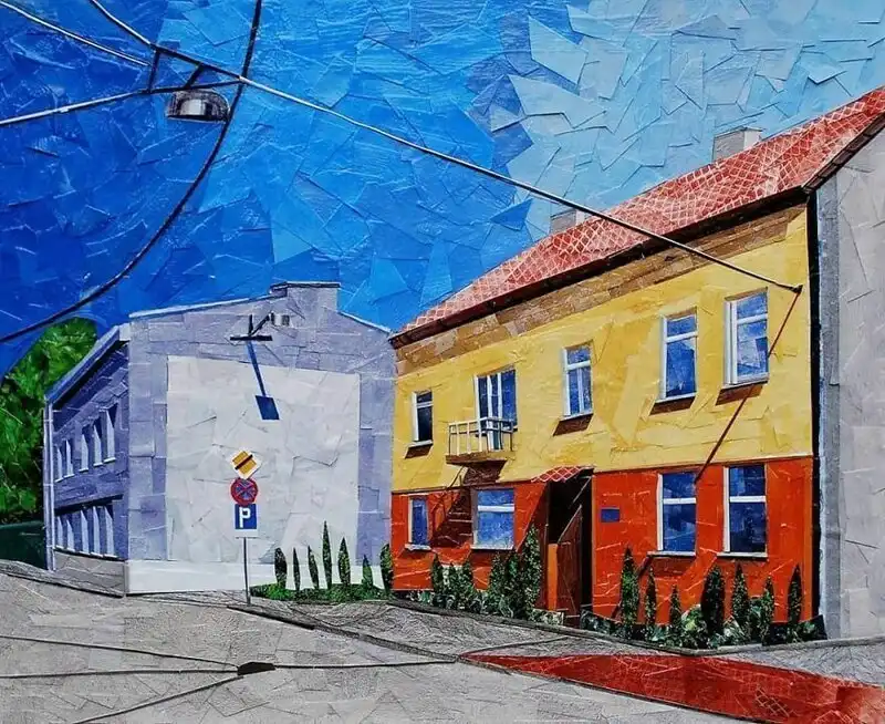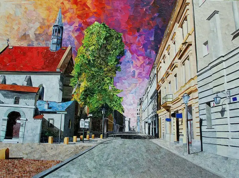 Если мимолетно взглянуть на произведения искусства Альбина Талика, то можно подумать, что это масляные картины, но самом деле это коллажи из тысяч порванных клочков бумаги.