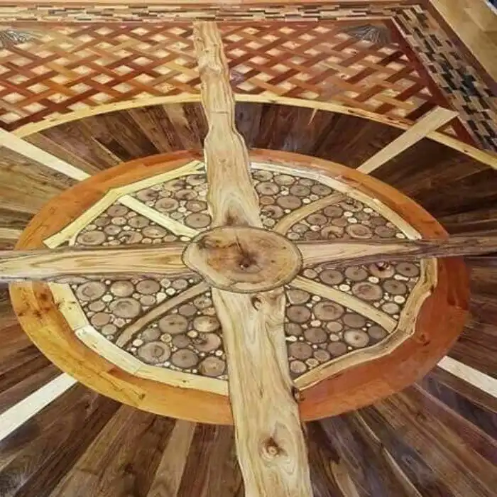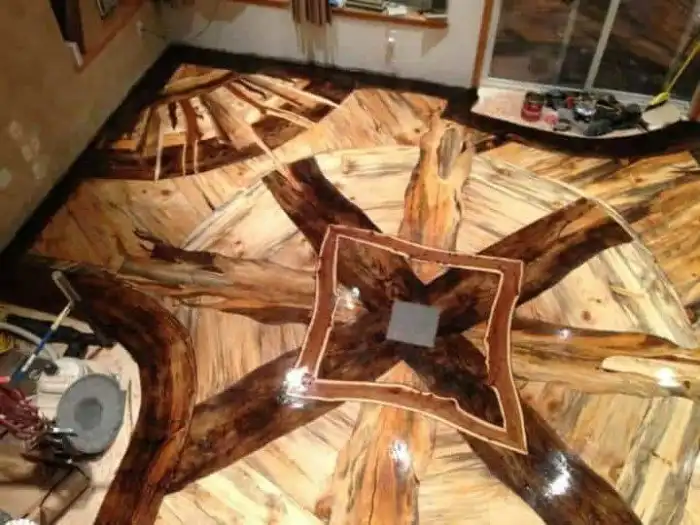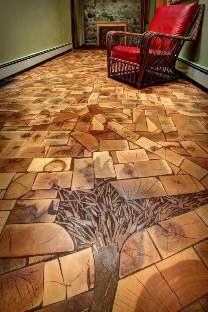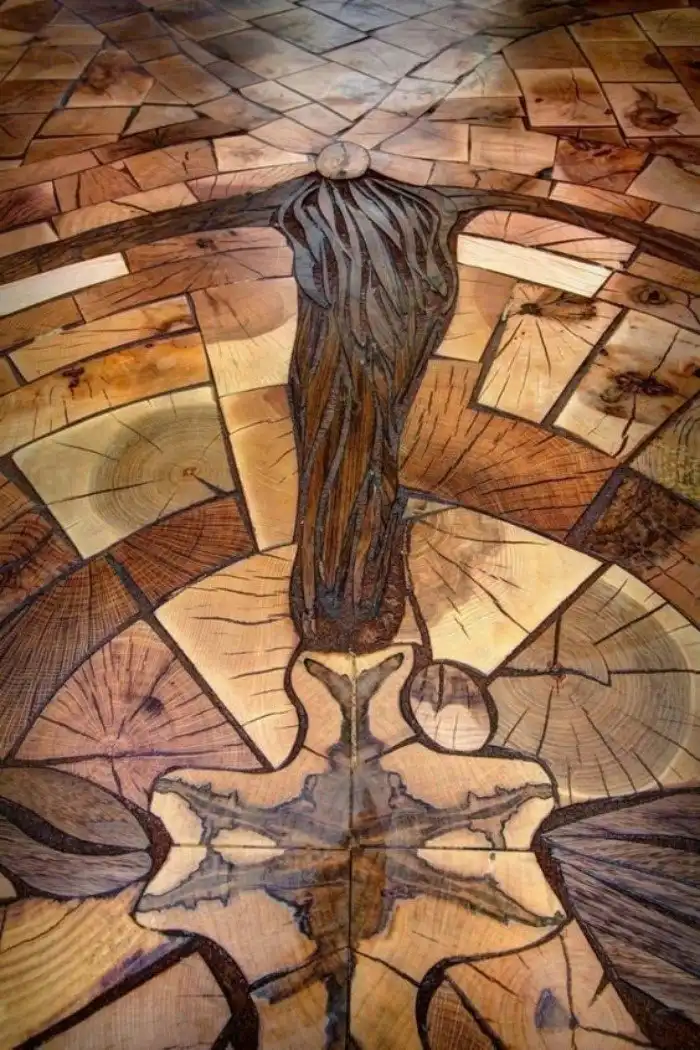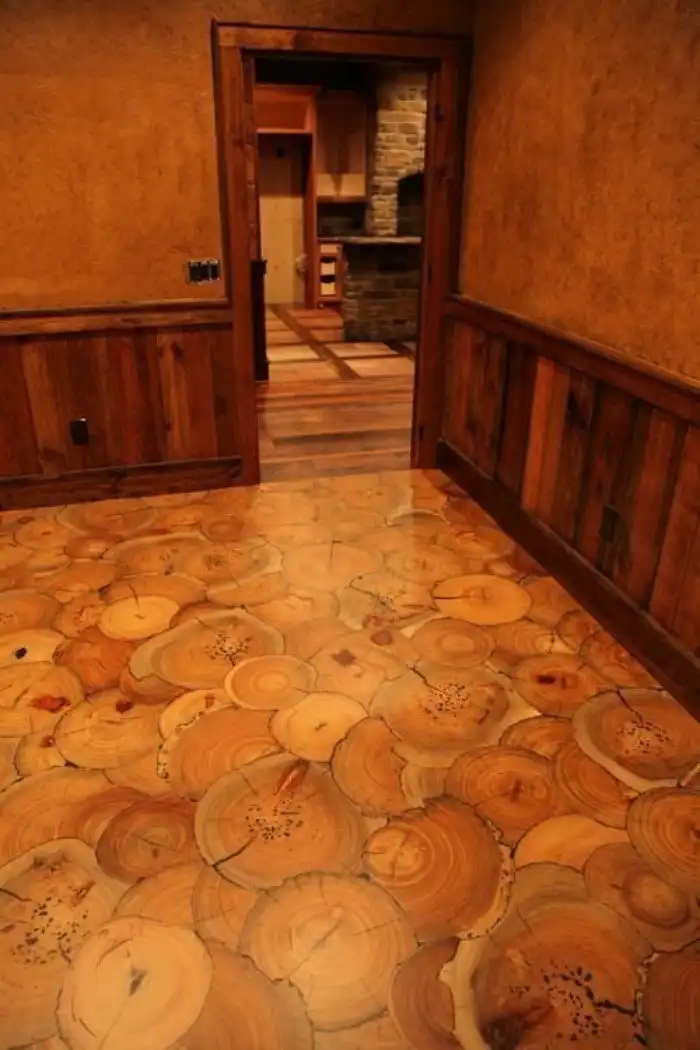 Да, конечно, про брусничные мы пошутили, но как созвучно - ведь сделаны они из брусков или спилов дерева - и это не просто какой-то там паркет, это невероятная красота, создающая ощущение, что вы ходите по лесопилке. Шутка...