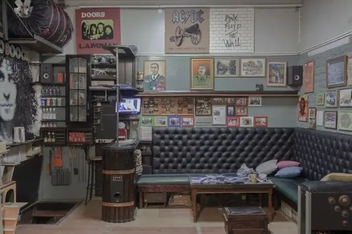 Наверху стоит машина, в подвале комната отдыха с печкой и барной стойкой