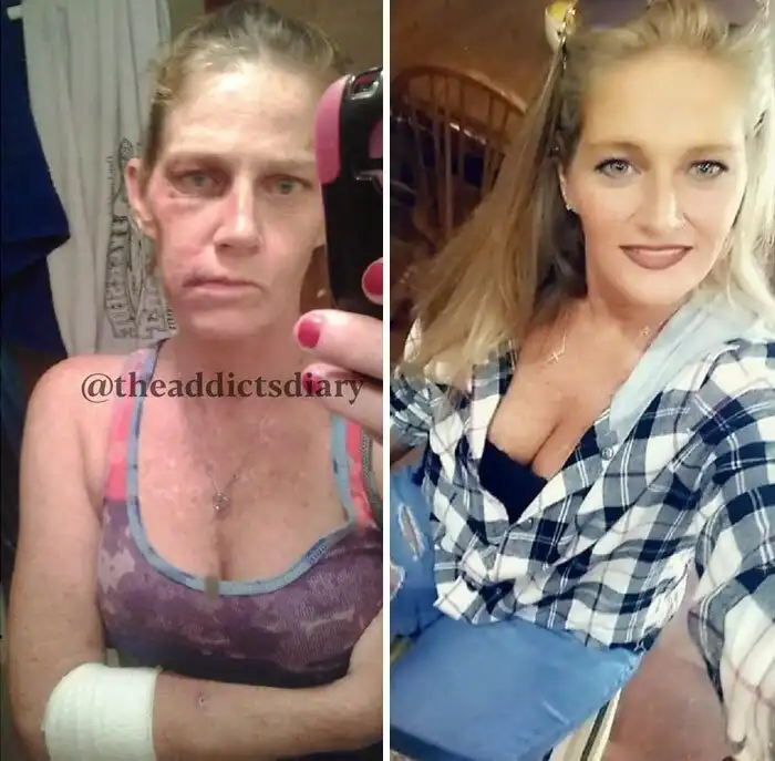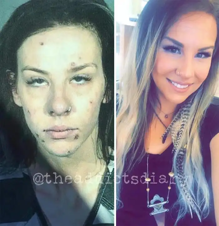 "Меня зовут Джейми, я бывший потребитель героина и метамфетамина. Между этими фотографиями - два года разницы. Отказаться от наркотиков возможно!"