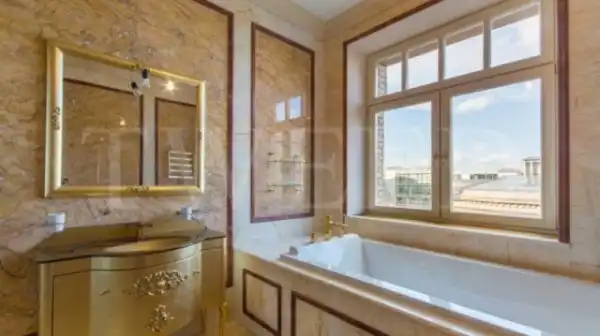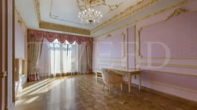 Спланированы: 5 спален, кабинет, кухня-гостиная, столовая, гардеробная и 4 с/у. В оформлении и отделке использованы натуральный камень, дерево, лепнины и художественные росписи. Из окон квартиры открываются роскошные виды на Храм Христа Спасителя и набережную реки Москвы. Также в квартире есть лоджия - 15,2 кв.м... Ну что, прогуляемся по этой замечательной 6-комнатой квартирке?