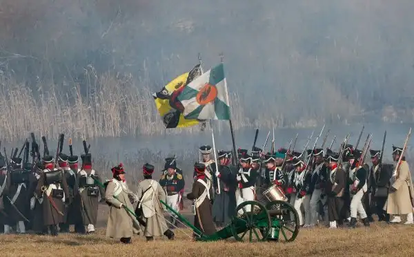 Под Минском прошла масштабная реконструкция "Битвы на Березине". Члены исторических клубов разделились на французские корпуса и русские армии Чичагова и Витгенштейна. Сражение происходило на обоих берегах реки Березина, где переправлялись войска Наполеона в ходе Отечественной войны 1812 года. Это масштабное событие проводится ежегодно в ознаменование годовщины битвы на Березине, которая прошла во время отступления французской армии Наполеона после вторжения в Россию. Давайте посмотрим.