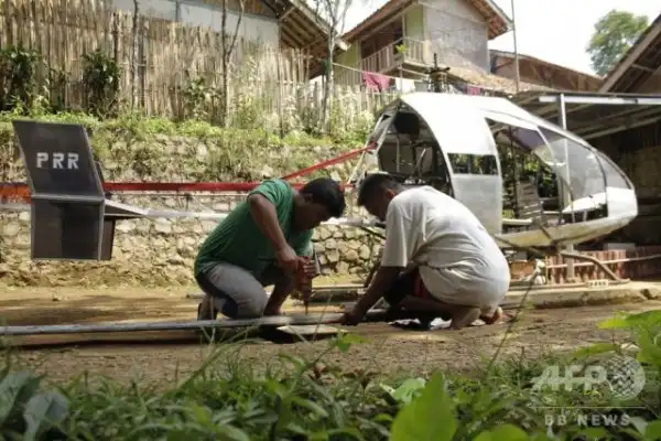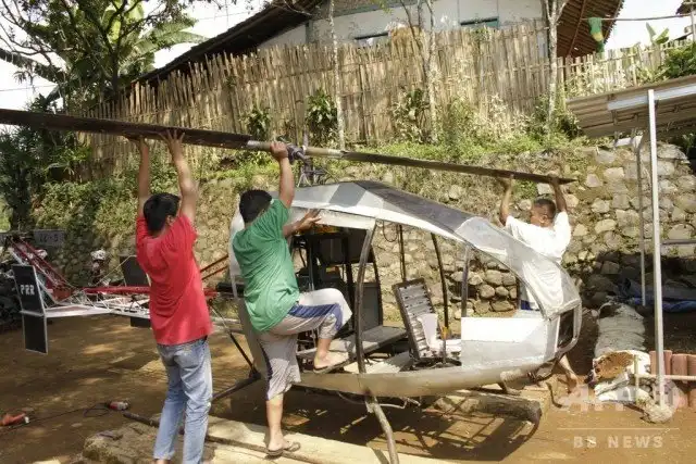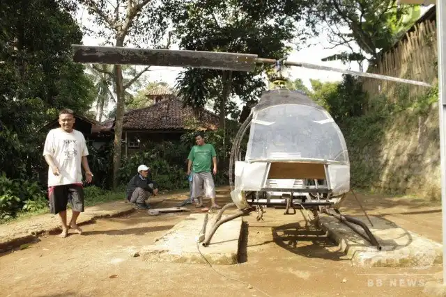 42-летний автослесарь, живущий в 110 километрах от Джакарты, понял, что хочет собственный вертолет. Собирать транспортное средство он начал еще полтора года назад, используя для этого все, что можно найти на заднем дворе или купить. Помогают ему сосед и сын, а учатся «конструкторы» по роликам на «Ютубе». В итоге, потратив всего 2 100 долларов, создатели вертолета получили машину длиной в 8 метров. Однако работы еще не закончены, надеемся, что у этих энтузиастов все получится. Правда, жена Джуджуна не очень довольна хобби мужа — оно «сжирает» слишком много денег.