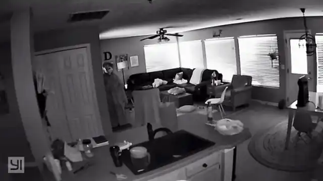 "Жена и дети ушли на Хэллоуин. Я решил сделать сюрприз к их возвращению - вот так он выглядит на камере наблюдения"