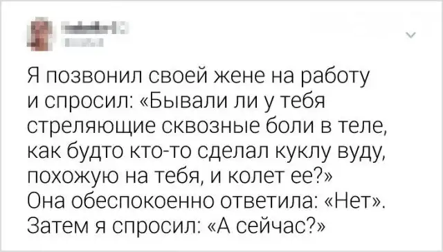"Скинул рентген жене, надеясь на сочувствие. Она сказала, что мой позвоночник похож на проселочную дорогу"