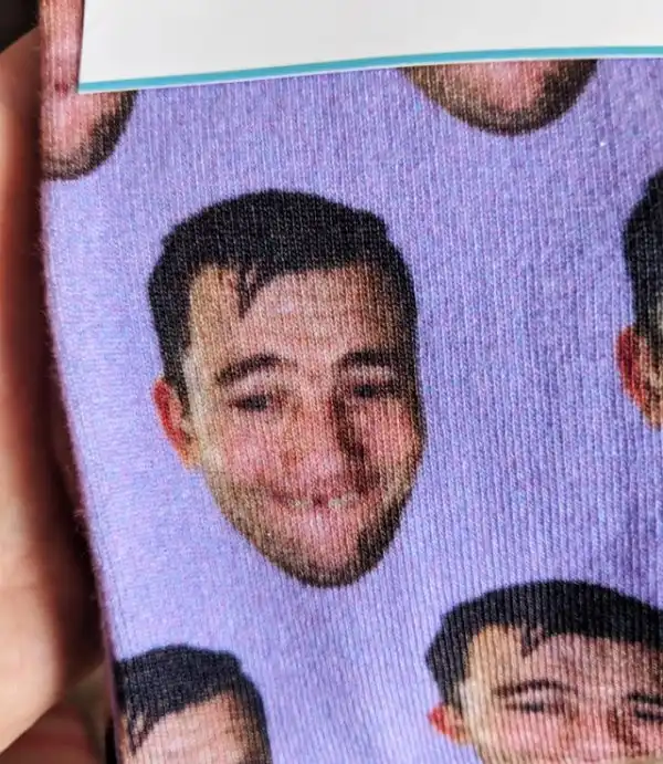 "Я потерял зуб, а моя жена меня сфотографировала. После сделала носки с этим изображением и подарила моей маме"