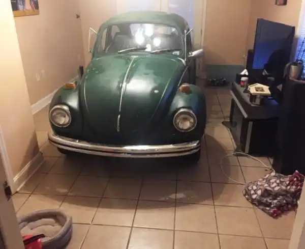 "Недавно узнал, что наш "Фольксваген" идеально помещается дома. Интересно, обрадуется ли этом факту жена?"