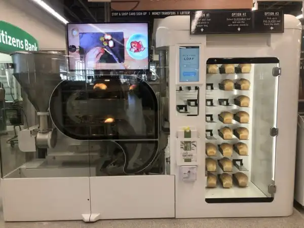 Машина по производству хлеба, и на каждой булке есть дата изготовления