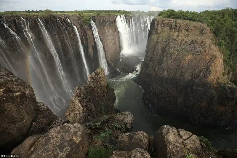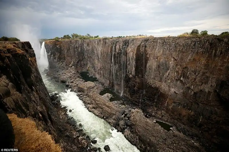 Уровень воды в реке Замбези, на которой находится водопад, упал на 50 процентов, и теперь под скалой собираются несколько крошечных луж воды. Такого низкого уровня воды здесь не отмечалось последние 40 лет. Власти Замбии уверены: всему виной изменение климата и глобальное потепление.