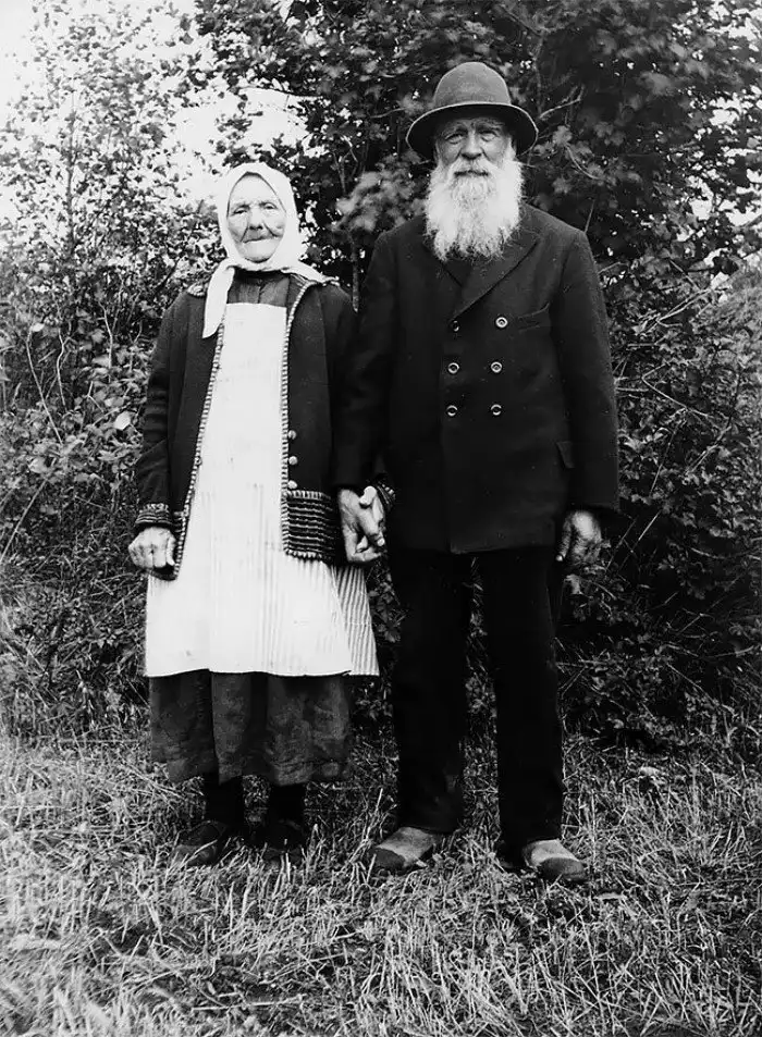 79-летний фермер Карл Андрес Самуэльсен из Стигаса, Швеция, и его жена, 1930-е г.г.