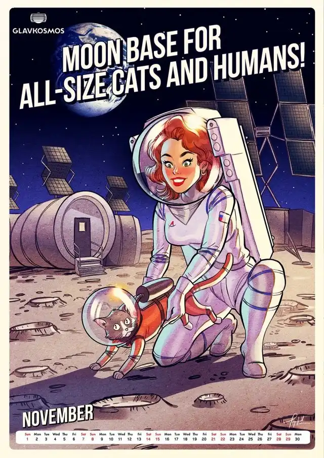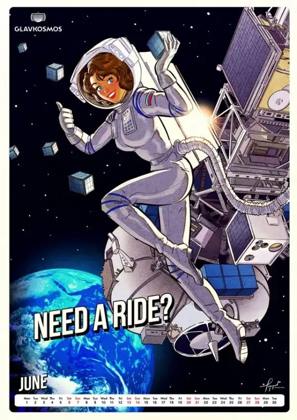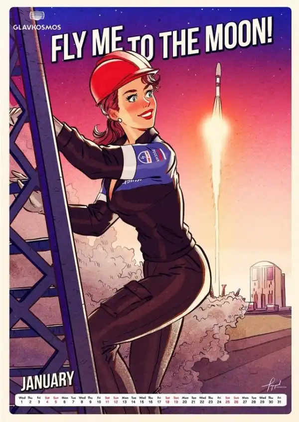 Судя по всему, российской корпорации нужно как-то привлекать к себе внимание, поскольку количество заказов на запуски падает из-за конкуренции. Поэтому было решено информационно поддержать престиж организации и создать вот такой вот календарь, работал над которым известный иллюстратор Андрей Тарусов. Художник создал календарь, изображающий сексуальных девушек за серьезной работой, нарисованных в стиле американской графики пинап середины XX века. Хорошо ли получилось у Роскосмоса выделиться на фоне конкурентов — судить только вам.
