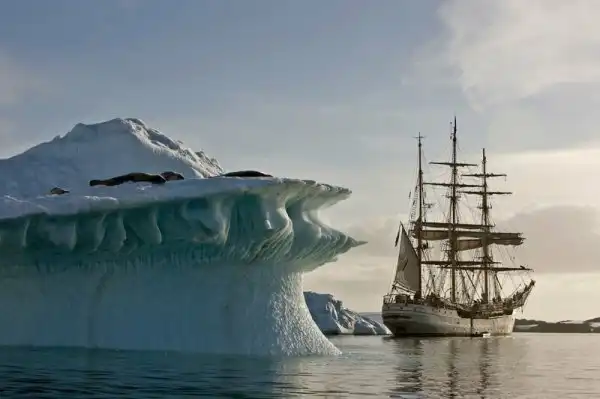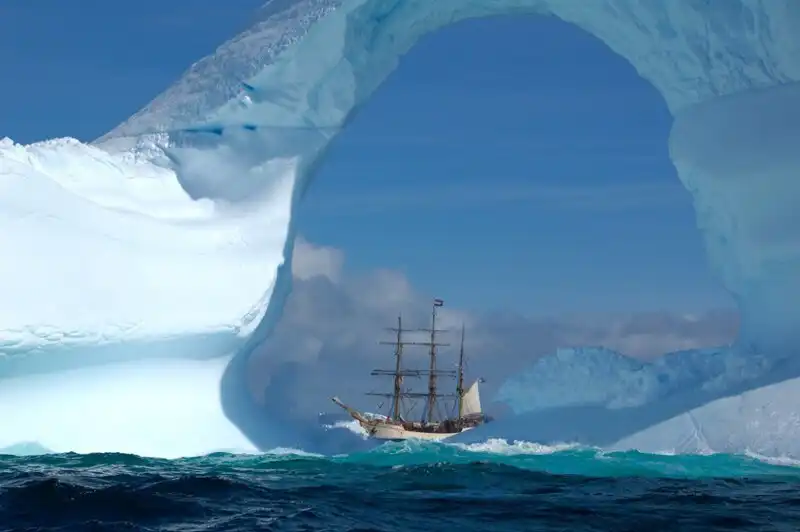 Айсберги – это глыбы льда, отколовшиеся от ледниковых щитов или шельфовых ледников. Большая часть айсбергов образуется в результате скола. Возраст айсбергов может достигать десятки и сотни тысяч лет. Некоторые айсберги формируются благодаря твердым осадкам, которые выпадают на протяжении долгих лет и ложатся на поверхность миллиардами снежных кристалликов, которые, словно зеркало, отражает солнечный свет. Остальные образуются из замерзшей воды.