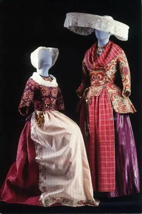 Испанские женщины с плиссированными юбками, которые надевались на голову в качестве плащей
