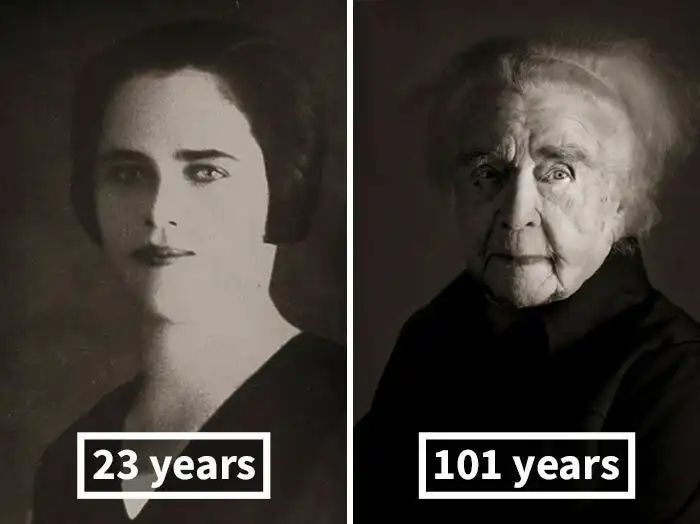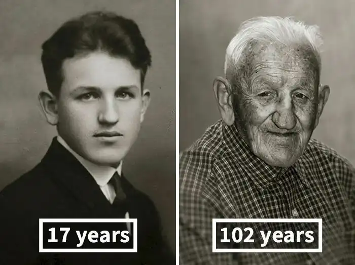 Когда человек стареет, очень многое меняется. Появляются морщины, редеют и седеют волосы… Этот список можно продолжать бесконечно. Но всегда остается личность человека. Фотограф Ян Лангер (Jan Langer) создал фотопроект под названием Faces Of Century («Лица века»): снял 13 чешских долгожителей, которым перевалило за 100 лет, и сравнил получившиеся снимки с фотографиями этих людей в молодости.
