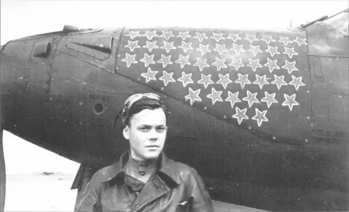 Летчик-истребитель Г.А. Речкалов возле своего самолета Р-39 «Аэрокобра»