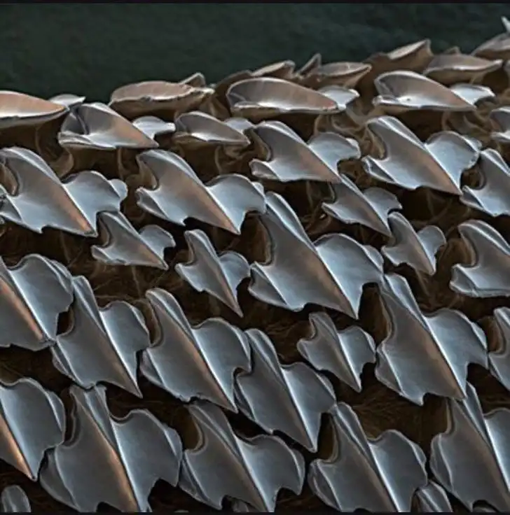 Под микроскопом можно увидеть, что кожа акулы на самом деле совсем не гладкая