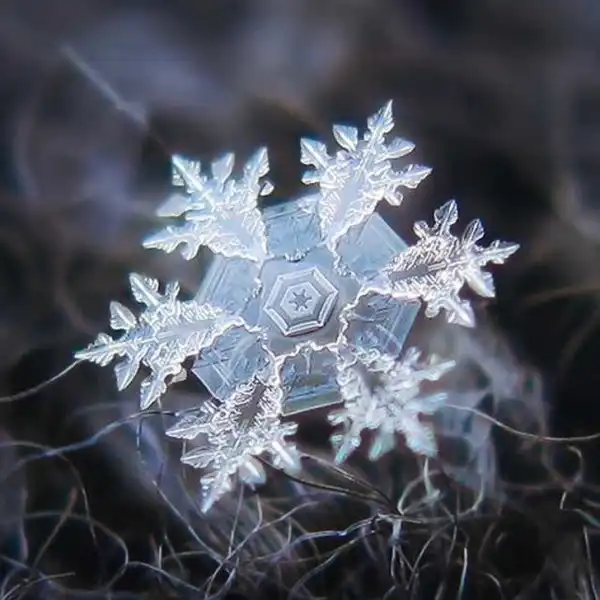 Снежинка под сильным увеличением показывает, насколько природа умеет соблюдать геометрию