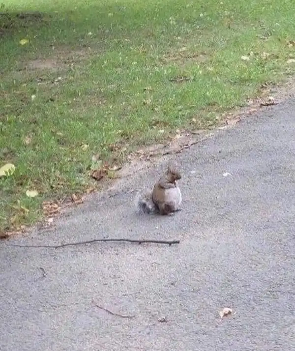Беременная белка выглядит так, будто наелась орехов на всю зиму вперед