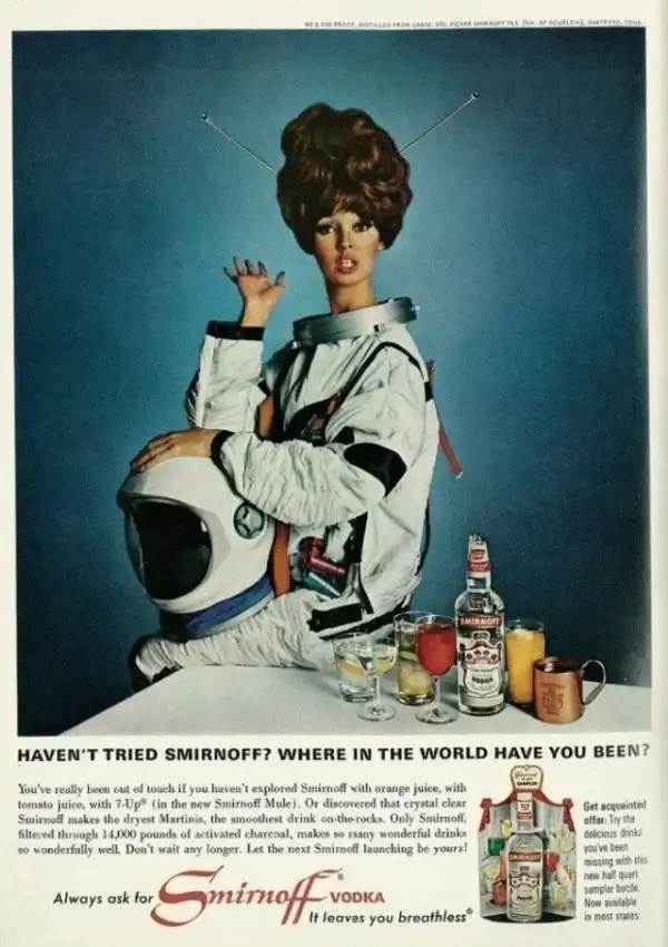 Реклама в журнале Playboy в 1966 году, повествующая о том, что без запаса водки не стоит покидать планету.