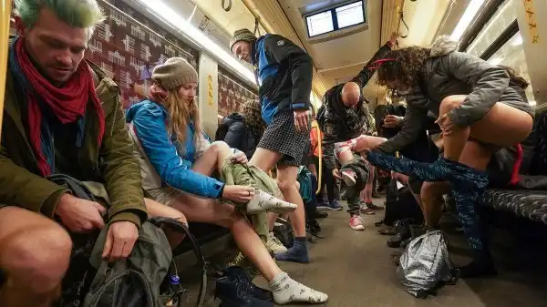 "В метро без штанов 2020" - это масштабный флешмоб, который проводится во многих странах мира. В этом году его провели в Нью-Йорке, Чикаго, Лондоне, Берлине и Праге и других городах.Суть флешмоба очень проста - долой штаны и вперед в метро. Какой-либо идеи у флешмоба тоже нет. Просто сотни людей веселятся и получают удовольствия от массового, безобидного безумия. Как сказали организаторы, это "международное празднование глупости".
