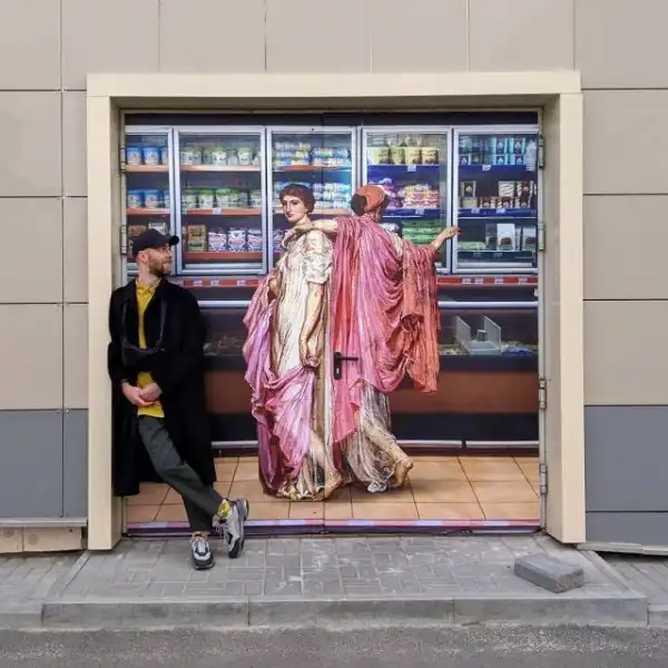 Украинский художник Алексей Кондаков уже несколько лет помещает возвышенных персонажей классического искусства в современные ТРК, метро, бары, исследуя разные грани великих полотен. Получается живо, интересно и подчас смешно! Кстати, первые работы можно посмотреть здесь.