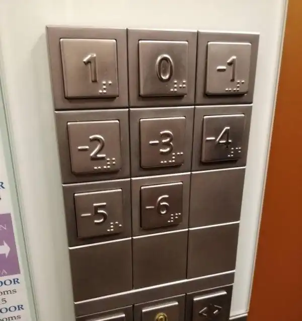Этот отель построен ниже уровня моря, поэтому большинство кнопок в лифте с минусовой отметкой