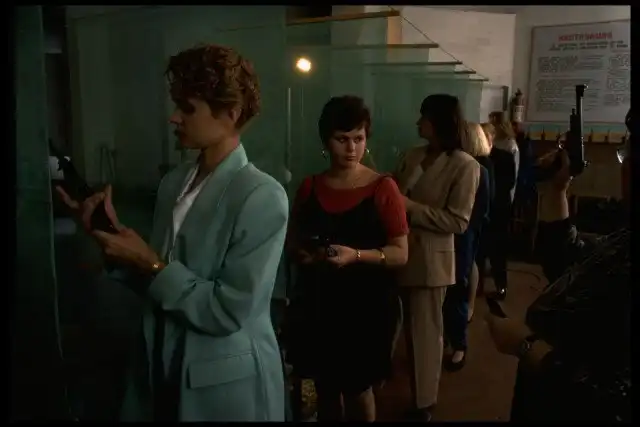 Оружие на столе лежит правильно - стволом в сторону мишеней. А вот люди зашли не туда.