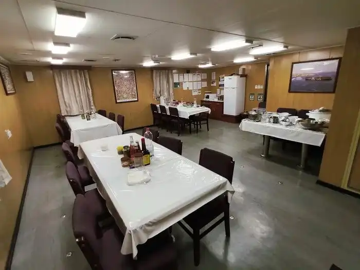 Круглый стол для «Top 4» (Капитан, Стармех, Старпом и Второй мех), другой для младших.