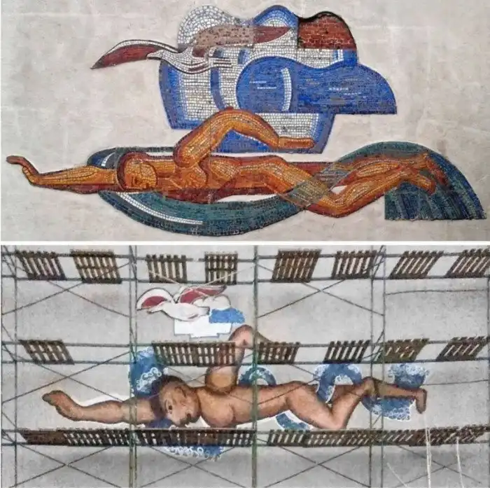 4. Пловец и чайка с советской мозаики в Нижнем Новгороде превратились в настоящее убожество