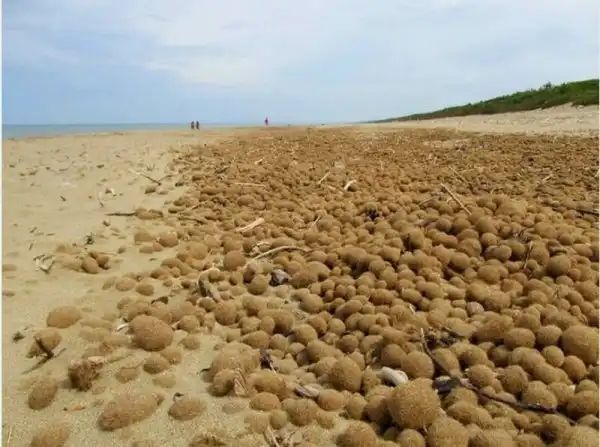 Это род морских трав посидония, образующая огромные подводные луга в Средиземном море. Периодически на берег выбрасываются шарики из листвы, которые называют egagropili