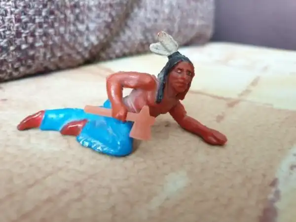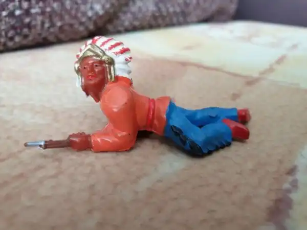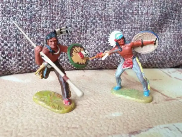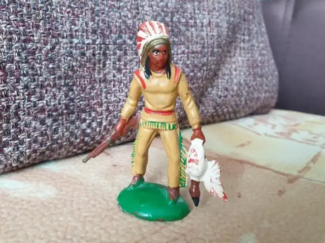 Были еще индейцы фирмы Эластон. Они были выполнены их композитного материала. Это более ранняя версия. По фигуркам они практически повторяли резиновых индейцев, но были более хрупкие. Но таких индейцев в то время было очень мало.