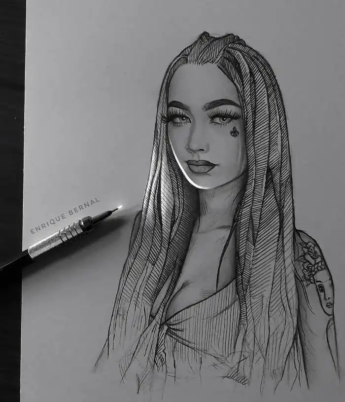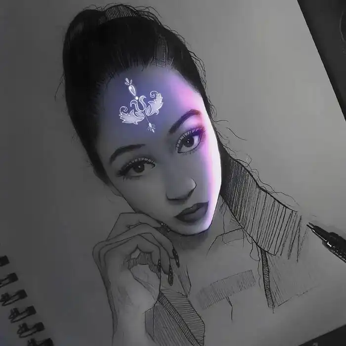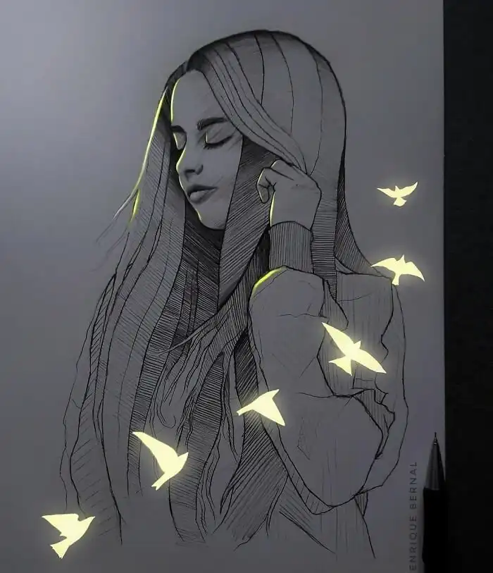 Художник из Мексики Энрике Берналь , мастерски используя карандаш, ручку, и электронное приложение, позволяющее придать картине флуоресцентный эффект, создает работы, которые словно светятся изнутри, обретая объем и жизнь.
