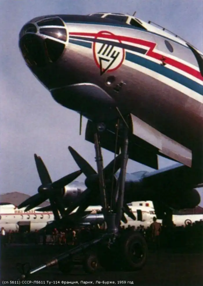 Гордость советской гражданской авиации Ту-114 в Ле-Бурже, Париж, 1959:
